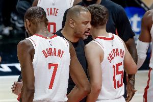 “杜蘭特和申京本身就具備穩(wěn)定強(qiáng)項(xiàng),我們從賽季第1場(chǎng)到收官戰(zhàn),全程都依托兩人的優(yōu)勢(shì)打球。小賈巴里·史密斯在進(jìn)攻穩(wěn)定性、外線拉開(kāi)空間、終結(jié)得分、賽場(chǎng)決策上都進(jìn)步巨大,本賽季的整體表現(xiàn)堪稱驚艷。因?yàn)榉陡ダ锾厝标?,讓球?duì)面臨一大難題:杜蘭特擅長(zhǎng)什么、申京擅長(zhǎng)什么,兩人如何搭配?何時(shí)主打杜蘭特、何時(shí)側(cè)重申京?隨著謝潑德融入球隊(duì),他打出了自身獨(dú)特的風(fēng)格,阿門的打法全面又多變。我們需要判斷不同回合該用誰(shuí)的特點(diǎn),又如何把所有人特點(diǎn)整合串聯(lián)?!彼雇ㄕf(shuō)道。
