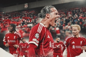 利物浦官方社媒發(fā)布了為此役制作的海報(bào),范戴克、?;倏?、薩拉赫、弗林蓬、喬·戈麥斯出鏡。